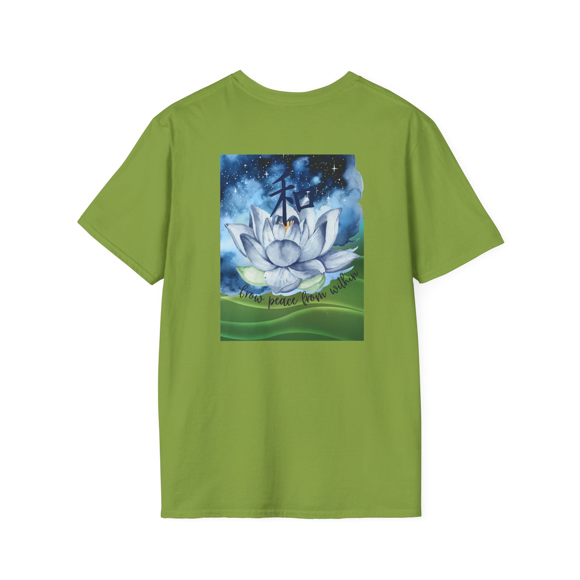 Let your inner light bloom with this soft, soul-centered tee. Featuring a radiant lotus flower and a peace symbol growing likea vine, this design reminds us that true peace starts within. Made for mindful living, conscious community and everyday insperation.
