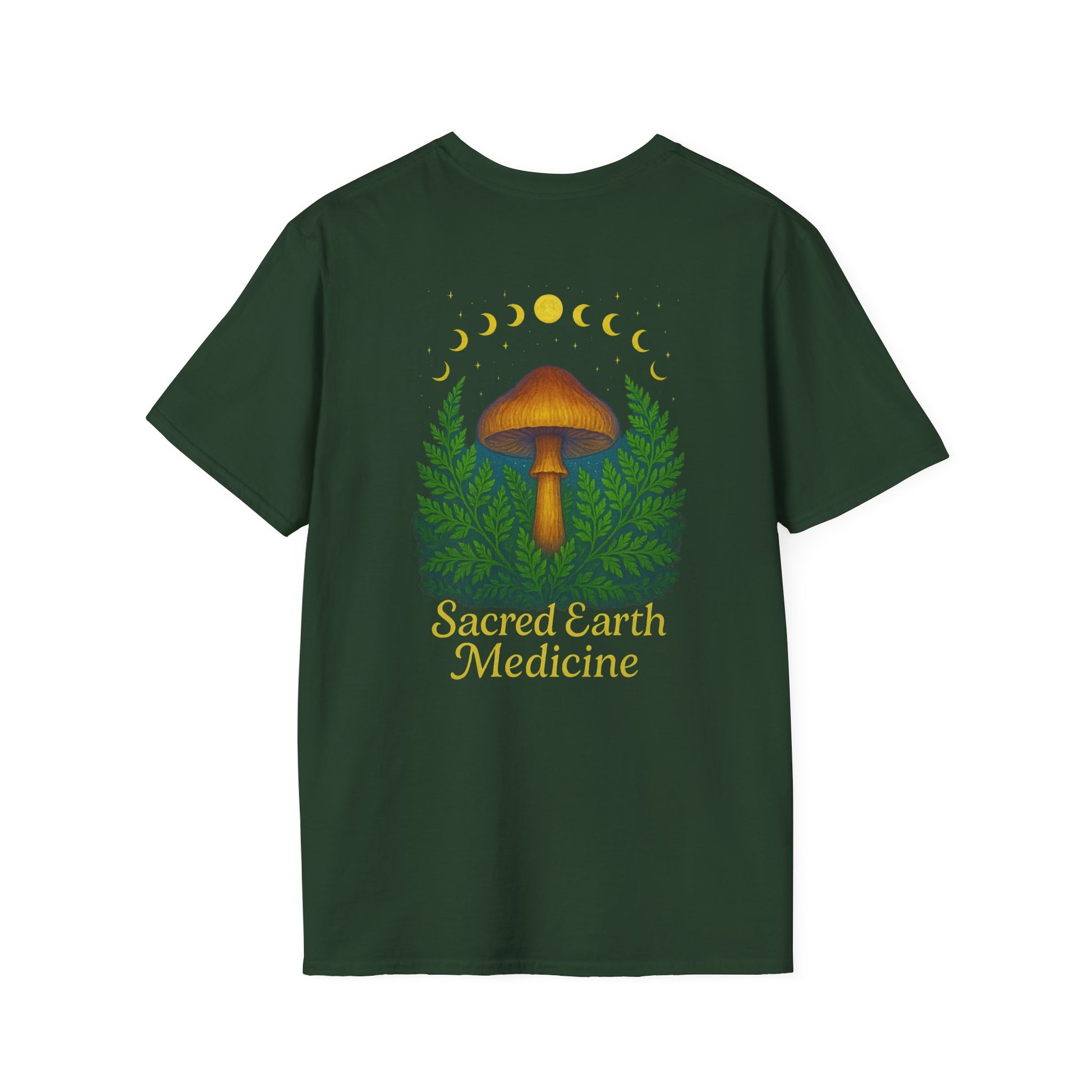 Step into the magic of the forest with our "Sacred Earth Medicine" tee. Featuring a bold, earthy mushroom cradled by vibrant green ferns and crowned with a celestial arc of moon phases, this design honors the deep wisdom of nature. Illuminated by stars and rooted in the rhythm of the Earth, this shirt is a wearable prayer for grounding, healing, and cosmic connection. Made for nature lovers, mystics, and medicine keepers — let your spirit grow wild and rooted.